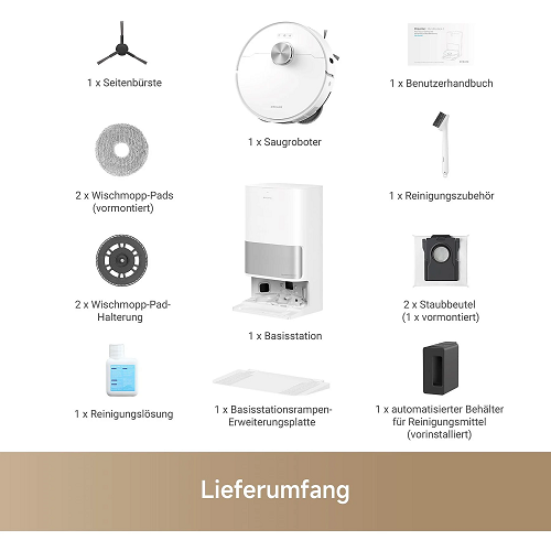 • 𝑬𝒇𝒇𝒐𝒓𝒕𝒍𝒆𝒔𝒔 𝒂𝒏𝒅 𝑪𝒐𝒎𝒑𝒓𝒆𝒉𝒆𝒏𝒔𝒊𝒗𝒆 𝑪𝒍𝒆𝒂𝒏𝒊𝒏𝒈: Featuring auto-empty capability for up to 75 days with a 300mL dust box and 3.2L dust bag. After each cleaning session, the rotary mops undergo an automatic blow-dry process using warm air at less than 42dB, ensuring they stay fresh. It automatically adds cleaning solution and refills water from its 4.5L tank and automatic mop washing, this station offers complete care without any manual effort.