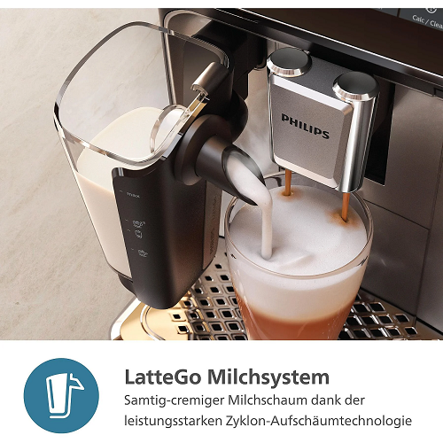 - Silky smooth froth: LatteGo automatically prepares silky smooth milk froth for your milky coffees with various types of milk. LatteGo is the fastest to clean milk system ever: 2 parts, no tubes