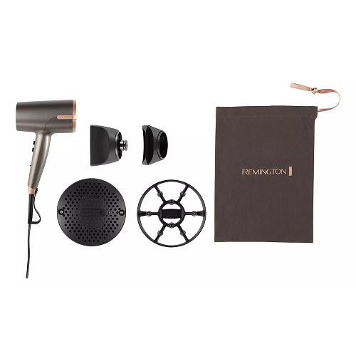 - Box contents: Hairdryer, Flyaway Tamer, Gentle Drying Diffuser, Curl Defining Diffuser, Slim Styling Concentrator, Storage Bag.