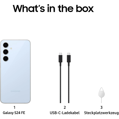 - Device, USB C charging cable, Quick start guide, Warranty card, Ejection pin.